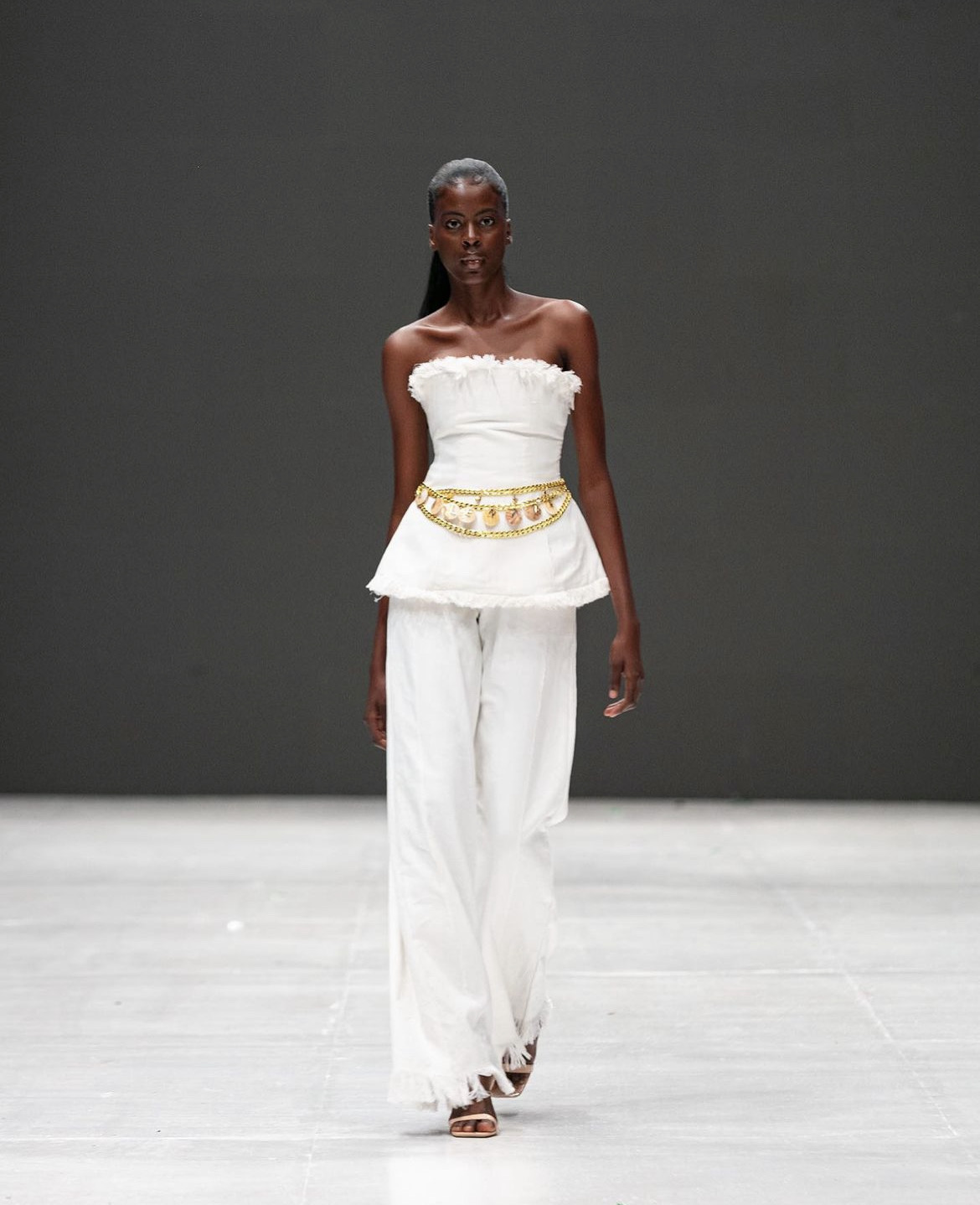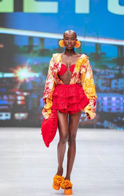 GETO returned to the Lagos Fashion Week runway better than they did last year. Samantha Adebayo’s creative direction of GETO has a history of drawing inspiration from 80s Hip Hop. Over the years, the brand has been seen as a brand championing alternative designs in Africa.. This year’scollection was titled “ILoVEHOME” and it offered a modern reinterpretation of the coastal city. With platform beach slippers and vibrant mini skirts, the collection managed to encapsulate both the lifestyle and ambience of the metropolitan city.