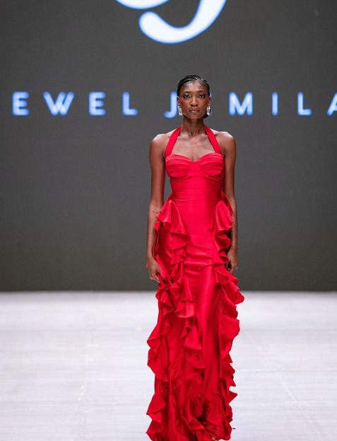 Jewel Jemila is the latest womenswear brand on the block, it was founded by Jemila Yesufu. The brand identifies itself as an unapologetically feminine brand and its Lagos Fashion Week debut collection is a testimony to that. The collection was heavily inspired by the “Astromenia” flower, the collection symbolizes sentiments of love, prosperity, fortune, devotion, and mutual support. The line presented its designs which had several crimson tones, striking hemlines, and elaborate necklines, making them the perfect choice for evening wear.