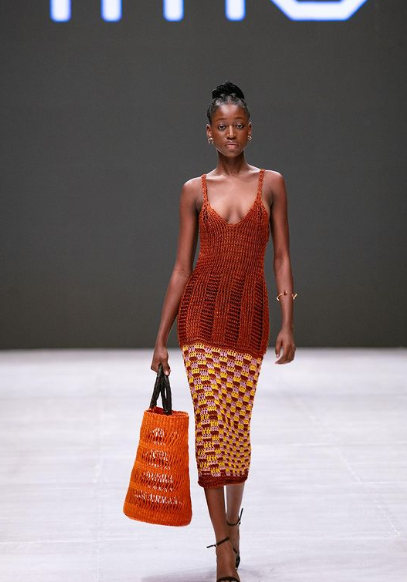 STUDIO IMO, the go-to knitwear brand for other IT girls such as Ayra Starr and Korty made its debut on the runway. The bespoke brand is known for its sexy and revealing pieces. Its debut collection stayed true to this ethos. In an interview with LFW, the co-founder, Edwin Okolo discussed his inspiration behind the collection. He drew inspiration from Ken Liu’s ‘Good Hunting’, a steampunk-inspired tale in ancient China, where two friends hunt shape-shifting fox spirits as societal changes challenge their way of life. This collection explores the dynamic interaction of time’s changing influence, conveyed through transitions in colours, elegant outlines, and compelling patterns.